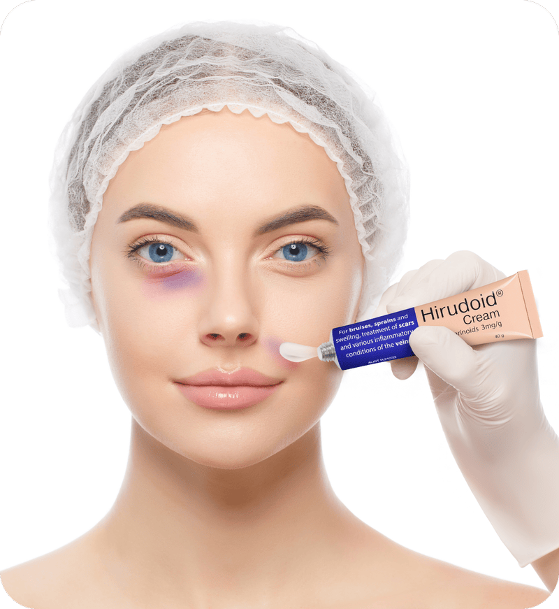 Hirudoid® is used to help reduce swelling, minimize bruise size, and fade discoloration after aesthetic treatments such as fillers, Botox, laser therapy, or rhinoplasty.